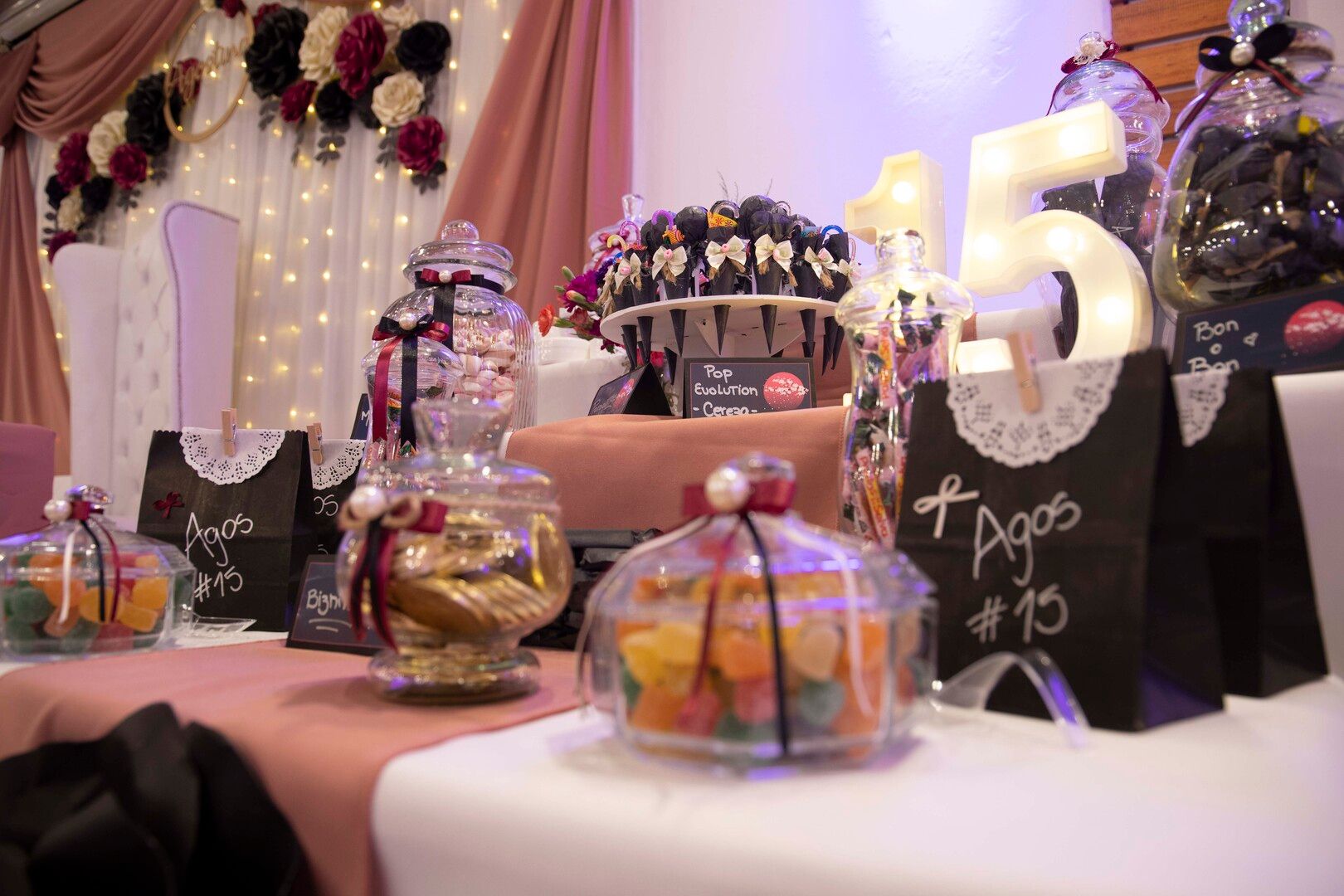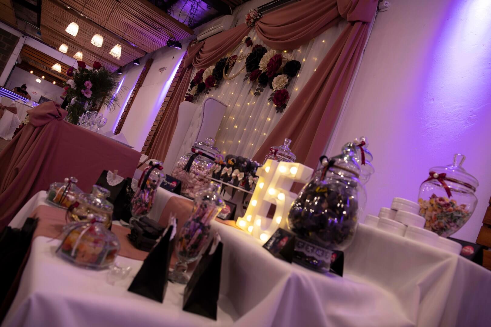 El pack incluye salón, ambientación, catering, bebidas, barra de tragos, mesa dulce, Dj, fotografía y filmación.